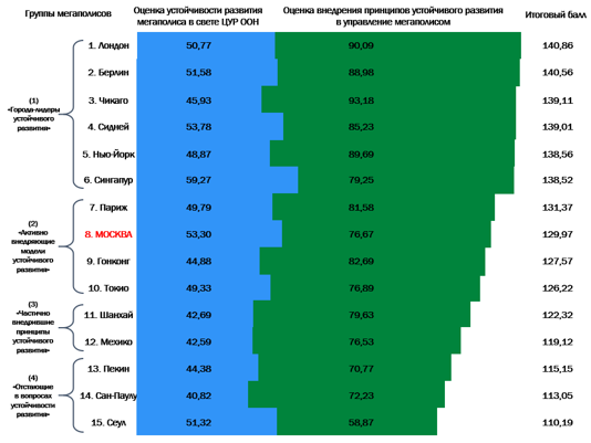 Cities included London, Berlin, Chicago, New York, Sydney, Singapore, Moscow, Paris, Hong Kong, Tokyo, Shanghai, Mexico City, Beijing, São Paulo, and Seoul. Based on the resulting ranking and a catalogue of best practices, a set of policy recommendations for megacities was developed.